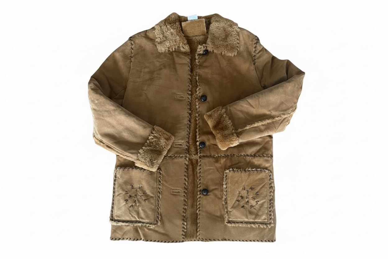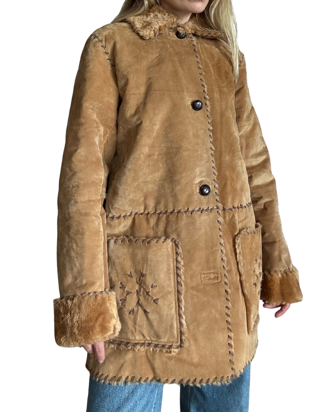 The BEST Vintage 90s whipstitch penny lane jacket - suede with leather whipstitch detail - fur lined - size marked M - fits more Large