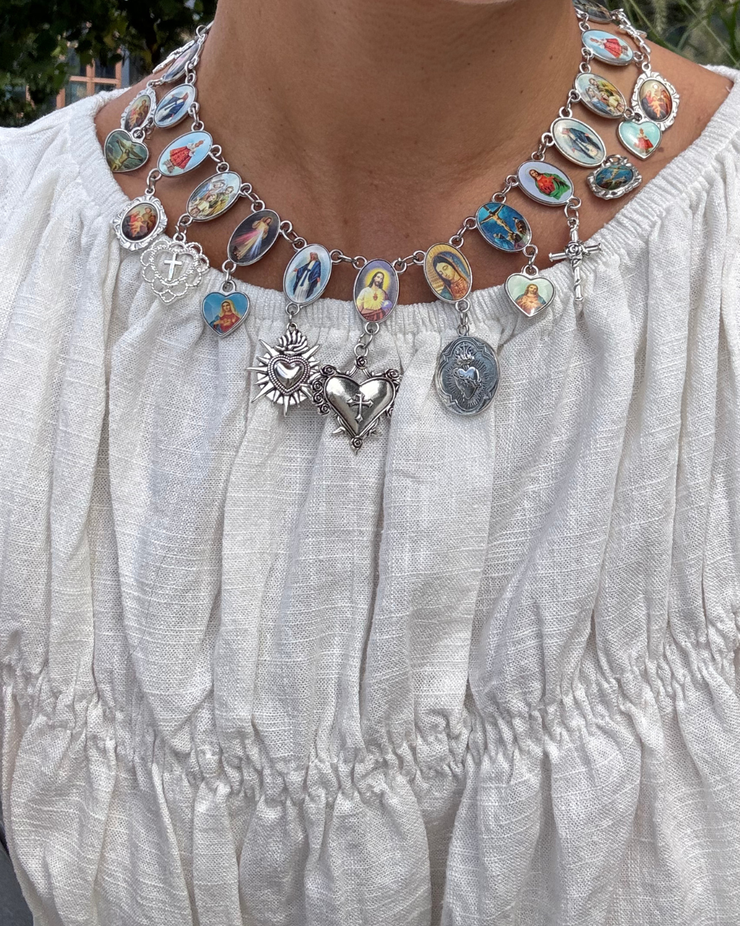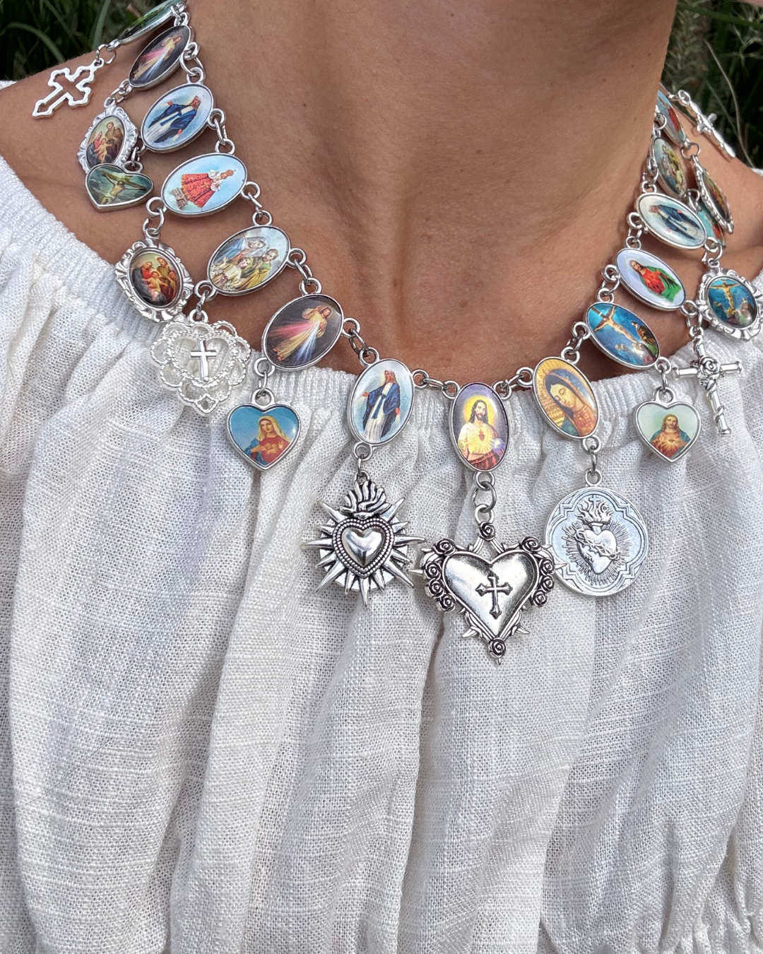 The ’HAVE MERCY’ necklace is the perfect statement piece to add to your jewelry collection. Each necklace is hand-made and unique, the rosary connectors and charms will slightly vary.
